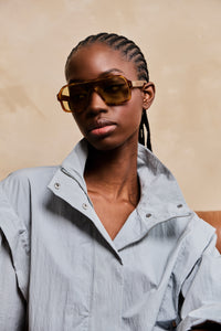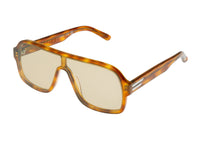 #spitfirecut: optical grade frames cut from Cellulose block Acetate with premium nylon, Anti-reflective Lenses & Ultra Violet protection. Flat-top, mask frames in Havana tortoise & tan lenses. Ships with Custom Sunglass Case and microfiber cloth.
