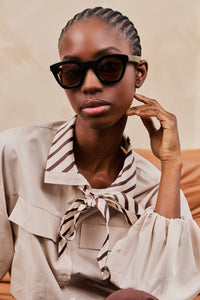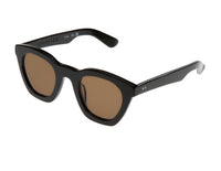 #spitfirecut: optical grade frames cut from Cellulose block Acetate with premium nylon, Anti-reflective Lenses & Ultra Violet protection. Chunky, oversize frames in black with mocha lenses. Ships with Custom Sunglass Case and microfiber cloth.