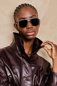 Silver metal, aviator Frames with Acetate Tipped Arms and black lenses. Distortion Free, UVA/B Safe Lenses. Ships with Custom Sunglass Case and Cloth.